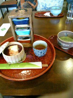 おしるこ超おいしい!!口直しに金柑や塩こんぶなんかがついてきて、ゴージャス!最初にお抹茶も出てくるんですよー。